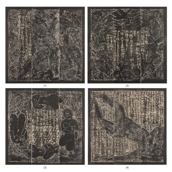 | 文献 | 『棟方志功全集第9巻 想いの柵(1)』、講談社、1978年、No.157-160 & p.192、No.113-116 《運命板画柵・美尼羅尼頌》 |