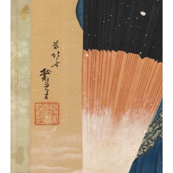 | サイン | 左に落款「前北斎 戴斗筆」、 朱文方印「よしのやま」 蜀山人賛「たをやめの あたゝかさうに見えたるハ 空にしられぬ 雪のはたえか」 箱蓋裏に「山王荘清玩」の貼札 |