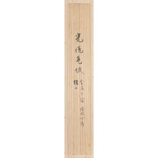 尚、田山方南による識箱には「陽明家傳来」とあり、折紙の写しには、箱に陽明家印ありとあるも、新箱に改められており旧蔵印などは確認できない。本阿弥光悦は、日本刀の鑑定、研磨を行う家に生まれる。家業に従事しつつ、数寄者として書・陶芸・漆芸・能楽・茶の湯などに携わった総合芸術家であった。徳川家康より洛北鷹峯の地を拝領し、芸術村を築いたことでも知られる。