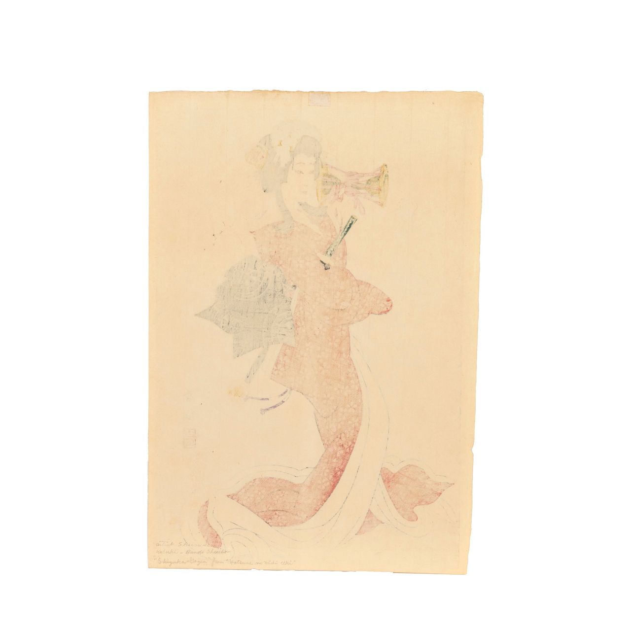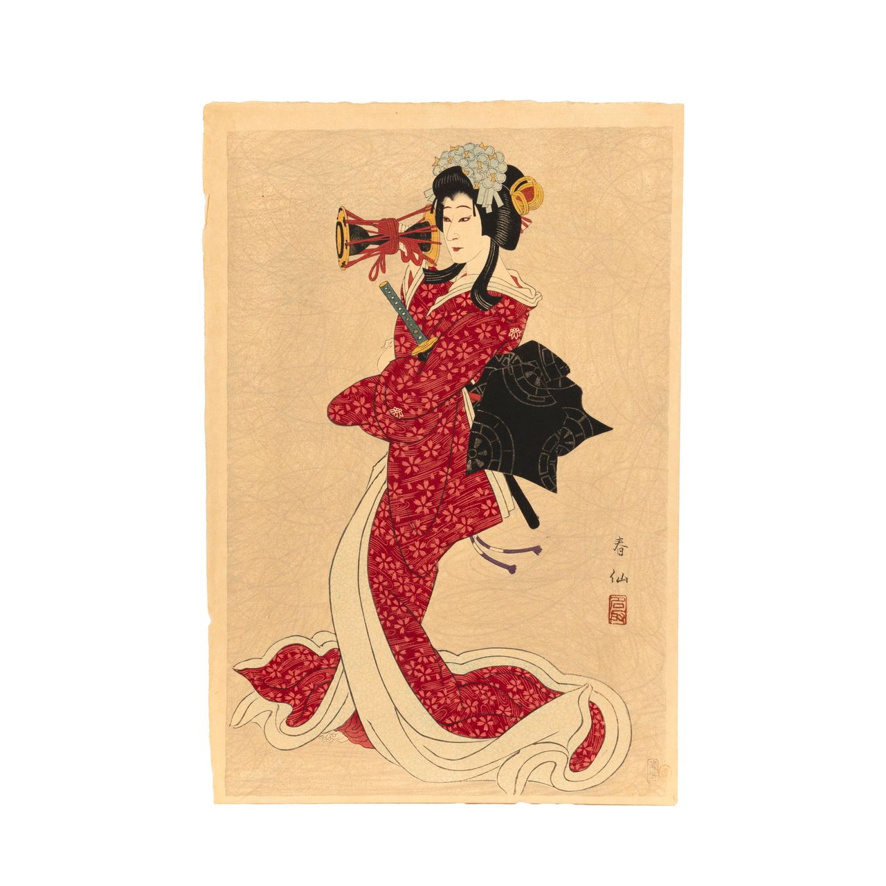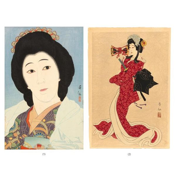 春仙似顔集より (1) 六世尾上梅幸 戻橋の小百合 (2) 三世坂東秀調 静御前 2点