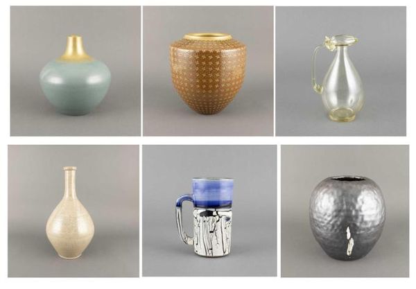 | 技法 | 他 (2)宮之原 謙 金彩彫萬華文壷 (3)由水 常雄 正倉院ガラス器白琉璃小水瓶 (4)時代白薩摩象嵌三島手大徳利 (5)指宿長太郎焼「器」 (6)同窯変花瓶 |