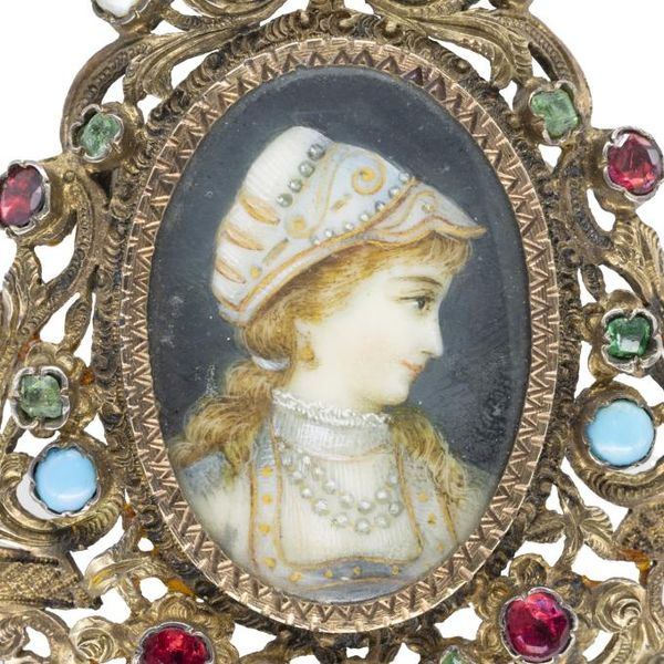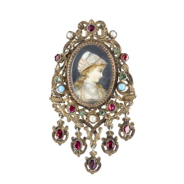 ヴィクトリアン ルビー エメラルド ポーセレンブローチ