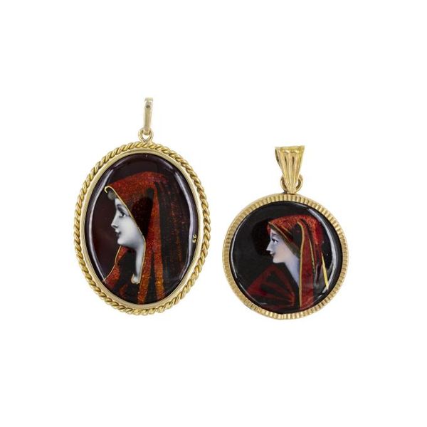 リモージュ エマイユ ゴールドフレーム ペンダントトップ 2点セット