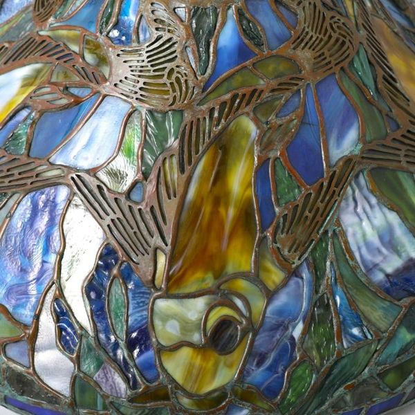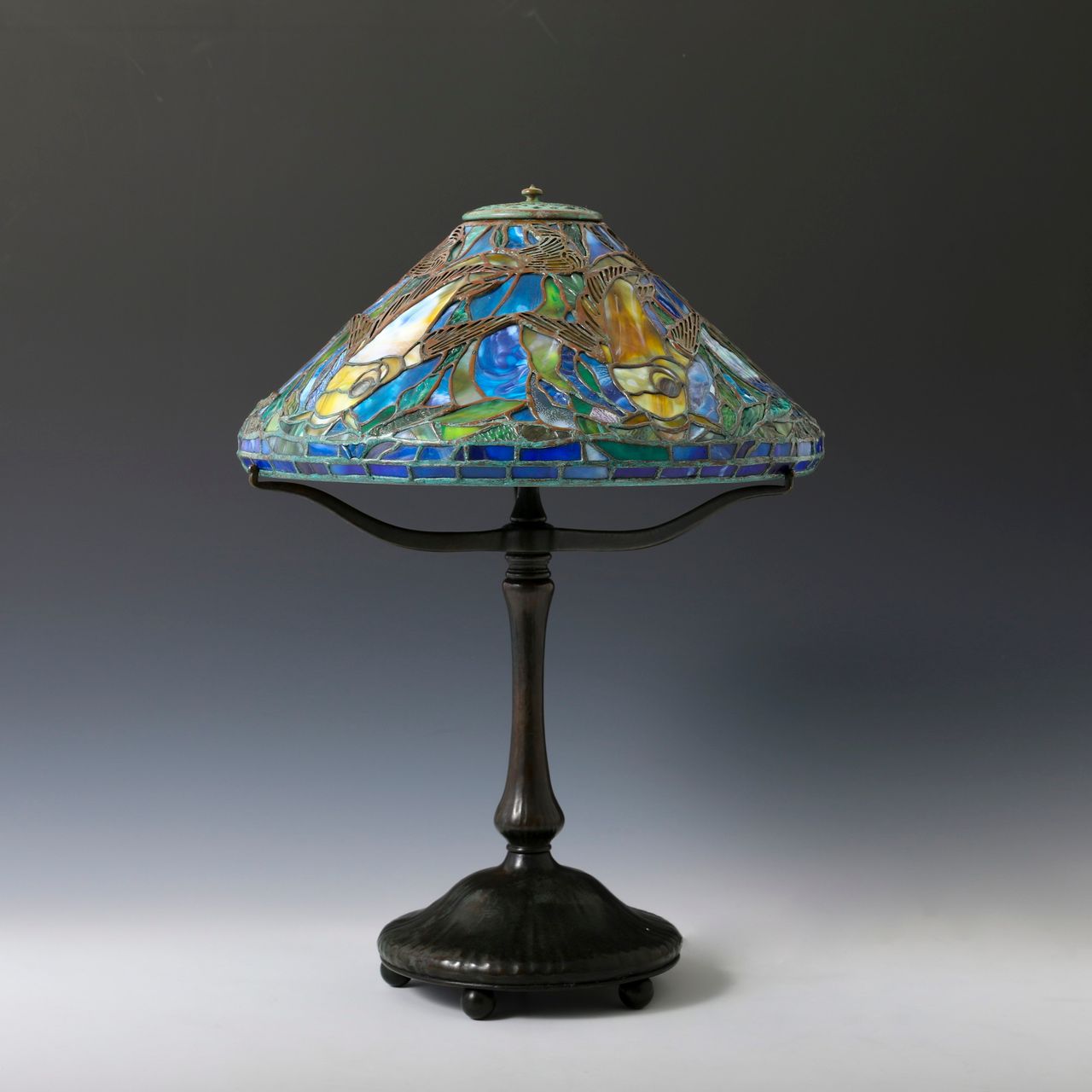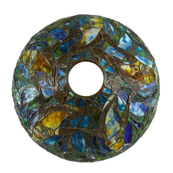 笠には生き生きとした5匹の魚が表されている。その様子は躍動感に溢れ、まるで水中を泳ぎ回っているかのようである。ティファニースタジオでは様々な動植物をモチーフにしたランプが制作されているが、中でも魚をモチーフとした作品は類例が少なく、市場に滅多に流通することのない希少なモデルである。