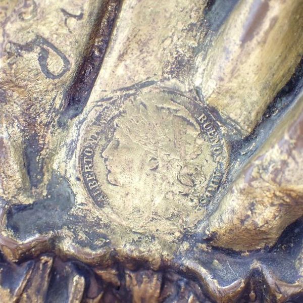 背面に陰刻銘、鋳造所印「Alberto Vignes Buenos Aires」 台座のプレートにタイトル「MARQUISE」