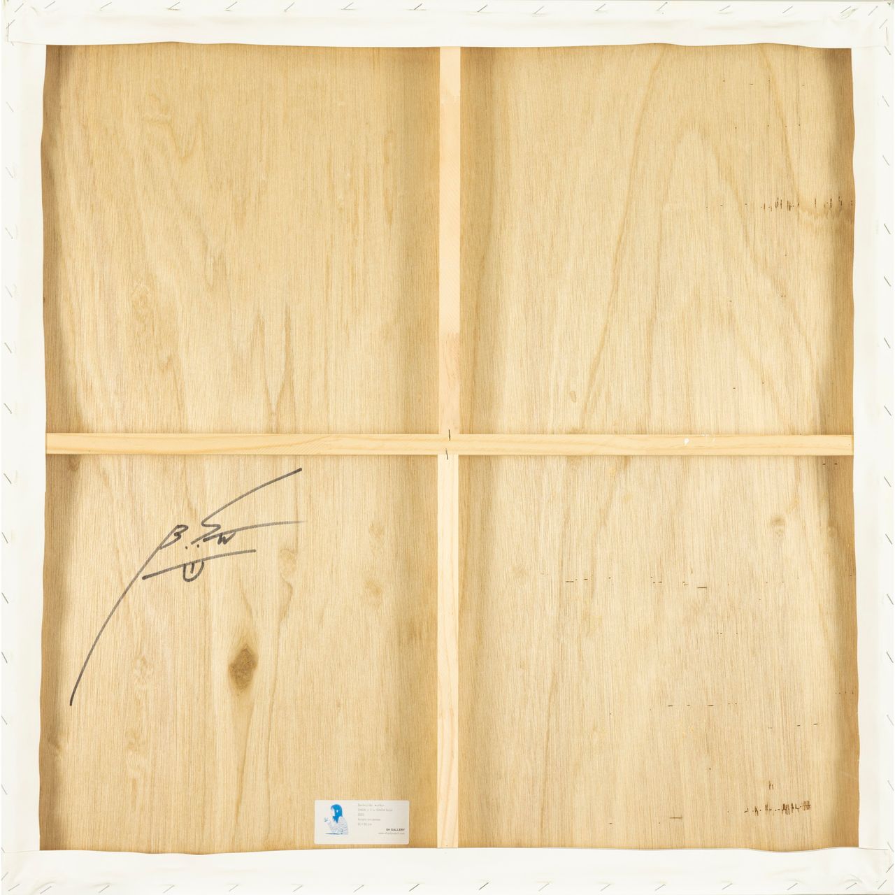 木枠にサイン、シール「SH GALLERY」