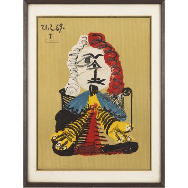 左上に版上サイン、年代「21.2.69 I picasso」 左下にエディション
