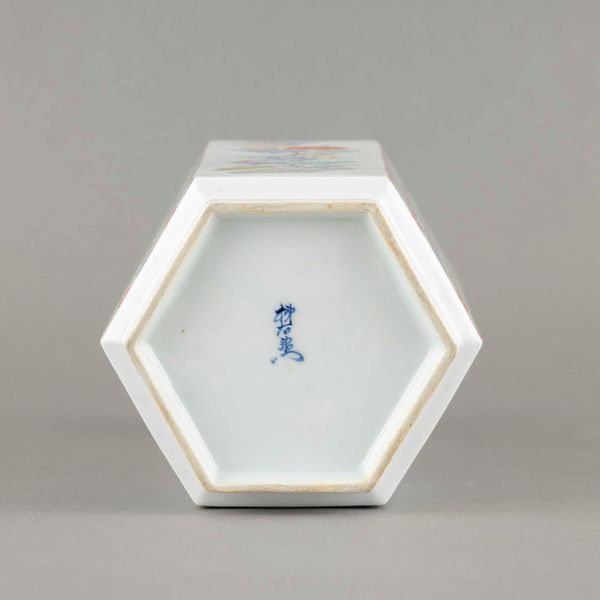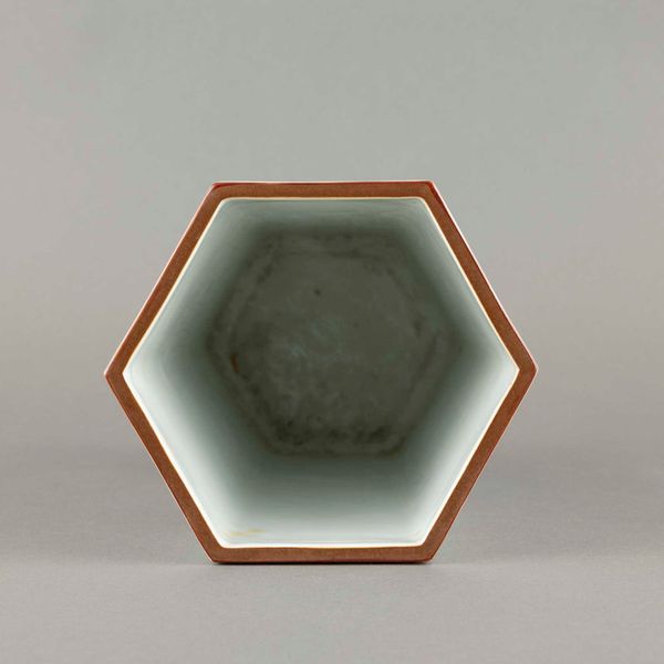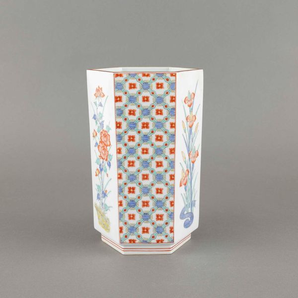 HEXAGONAL VASE WITH BROCADE-LIKE FLORAL GROUND PATTERN