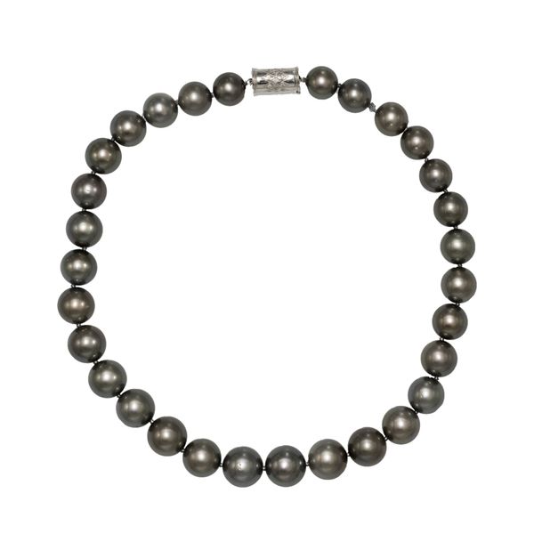 BLACK TAHITIAN PEARL DIAMOND GOLD NECKLACE