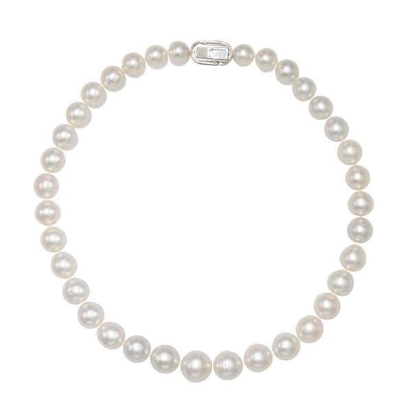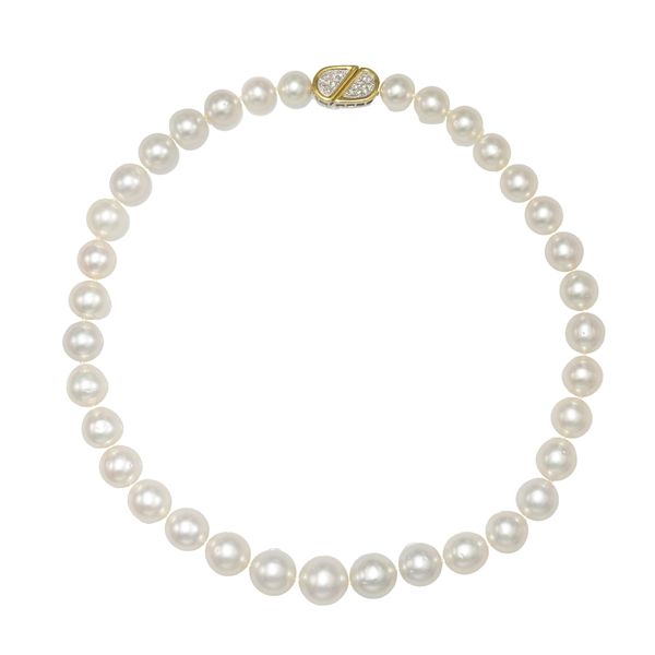 WHITE SOUTH SEA PEARL AND DIAMOND GOLD NECKLACE