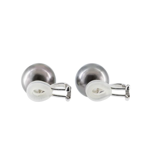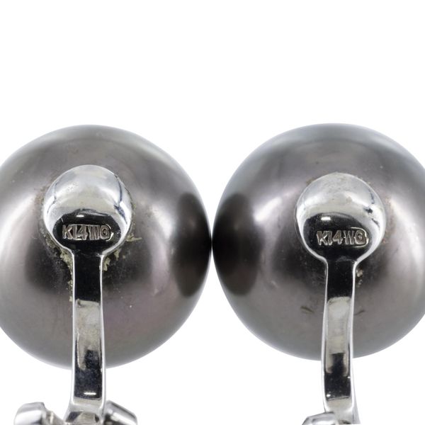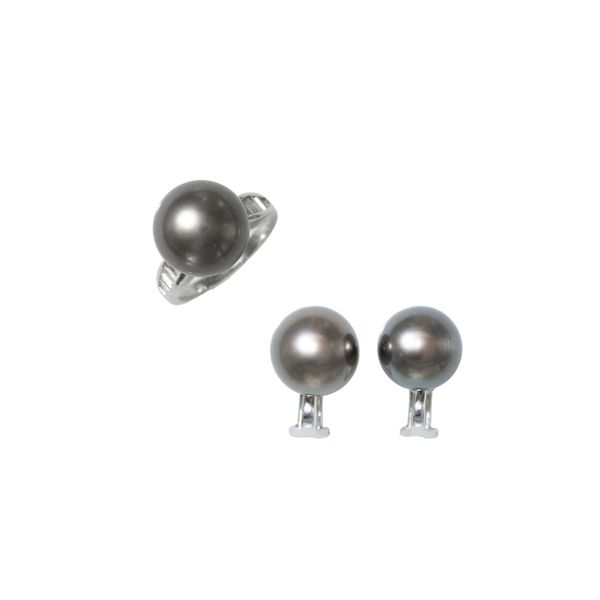 BLACK TAHITIAN PEARL AND DIAMOND GOLD EARRINGS & PLATINUM RING