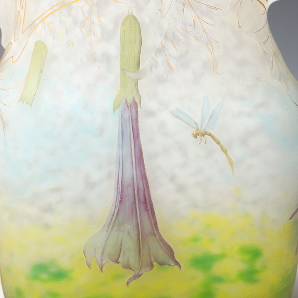 PITCHER WITH DRAGONFLY AND ANGEL'S TRUMPET