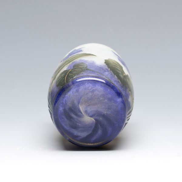mottled ground, cased glass, acid etching, enameling