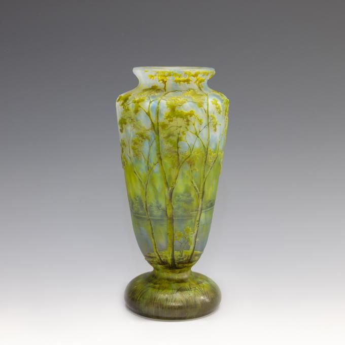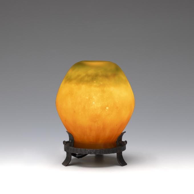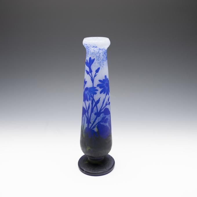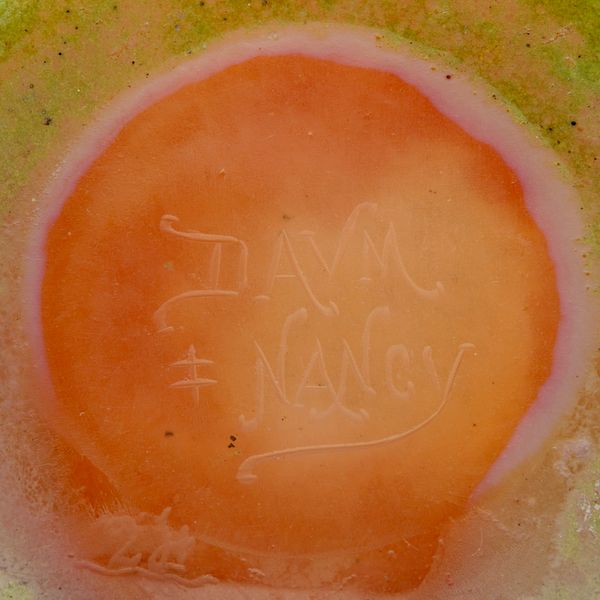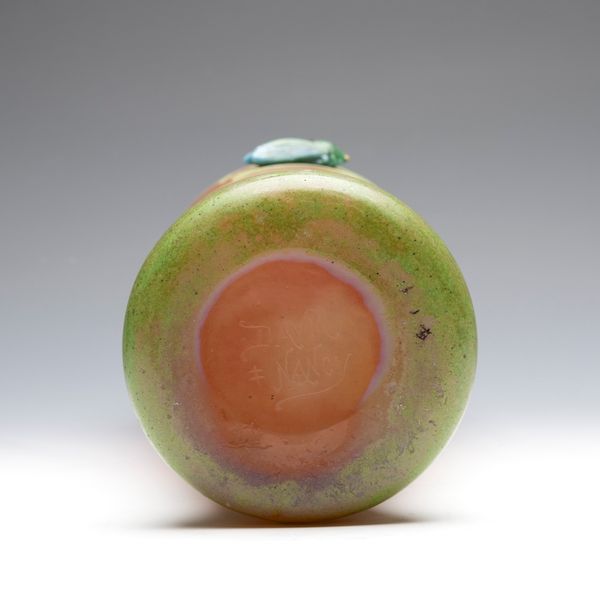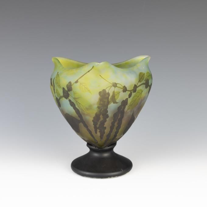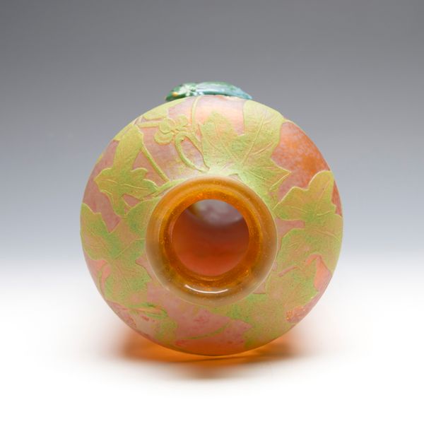 | Technique | mottled ground, vitrification, perle metallic, salissure, martelé, cased glass, acid etching, wheel-engraving, applied decoration, enameling |