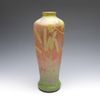 Set against a beautifully glowing morning sky, the morning glory leaves stretch dynamically toward the sun, while a newly emerged cicada, with translucent green wings, rests upon one of the leave. This multi-layered cased glass features a vibrant pink and yellow mottled background overlaid with opalescent and varying shades of green vitrification layers. The morning glory motif has been delicately acid-etched to capture the soft texture of the leaves, while the base is entirely covered with fine hammered patterns created using the martele technique.