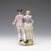 PAIR OF SHEPHERD LOVERS WITH BIRD AND BIRDCAGE