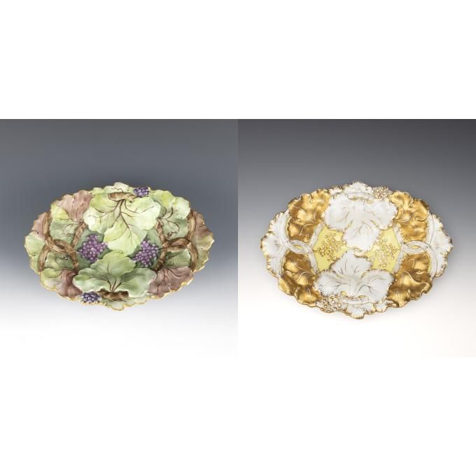 (1)(2)GILDED DECORATIVE PLATES (3)GILDED FLORAL TRAY 3 PIECES