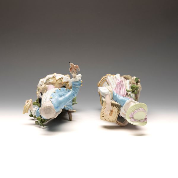 PAIR OF SHEPHERD LOVERS WITH BIRD AND BIRDCAGE