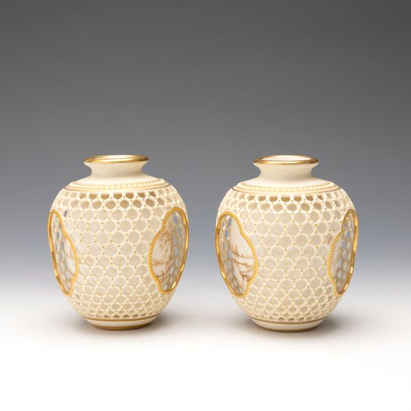 PAIR OF OPENWAORK LANDSCEPE VASES